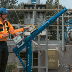 Genesi SC12NW er utviklet for arbeidsforhold der rekkevidde er avgjørende — der adkomstpunktet er langt unna, der det er hindringer i veien, eller der geometrien rett og slett krever mer arm enn standard systemer kan levere. Den teleskopiske armen justeres i tre lengder: 782, 918 og 1200 mm, noe som gir stor fleksibilitet på tvers av ulike installasjoner og underlag.