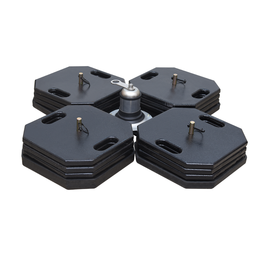 Systemet består av 4 overstøpte bunnplater og 12 topplater, hver med en vekt på 25 kg.