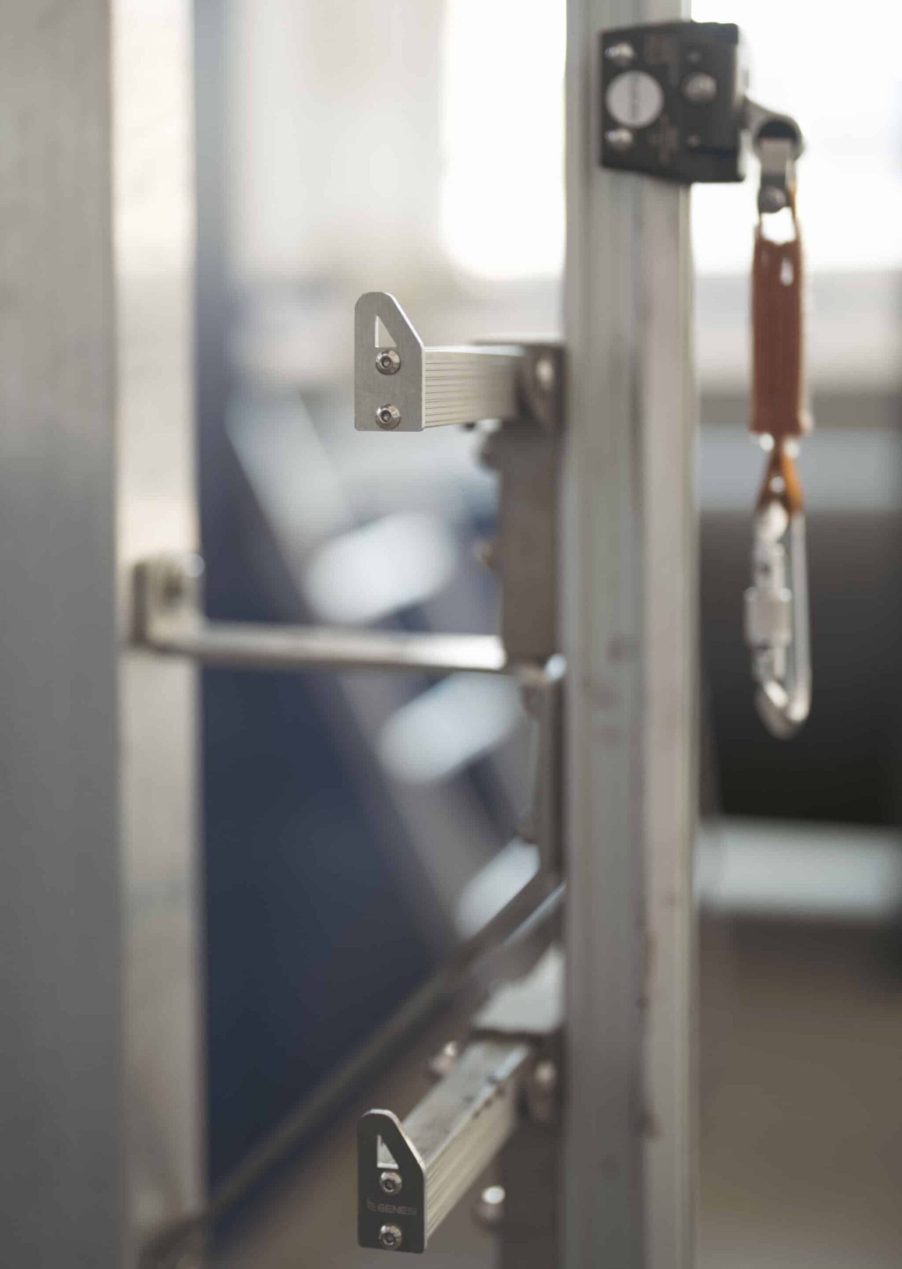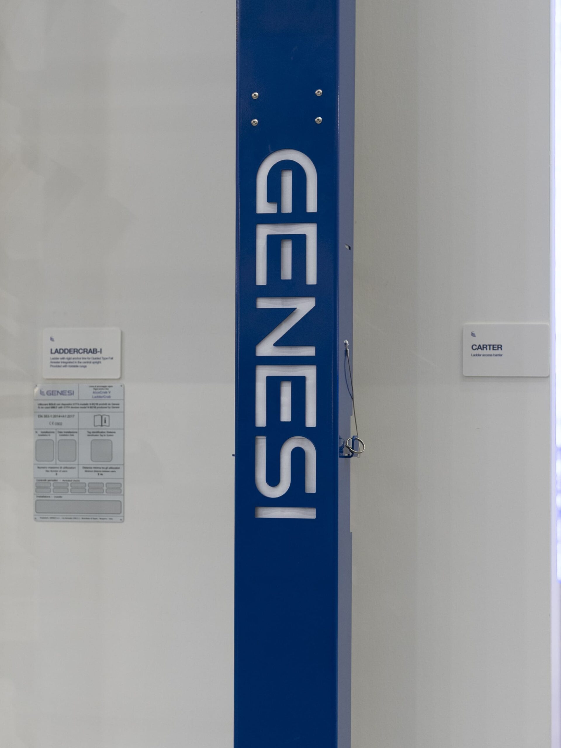 Genesi LadderCrab-I er et komplett adkomstsystem der stige og fallsikring er integrert i én løsning. Systemet er utviklet for industrielle installasjoner der det er behov for sikker adkomst til tak, maskiner, prosessanlegg eller andre høyder der en frittstående stige ikke er tilstrekkelig.
